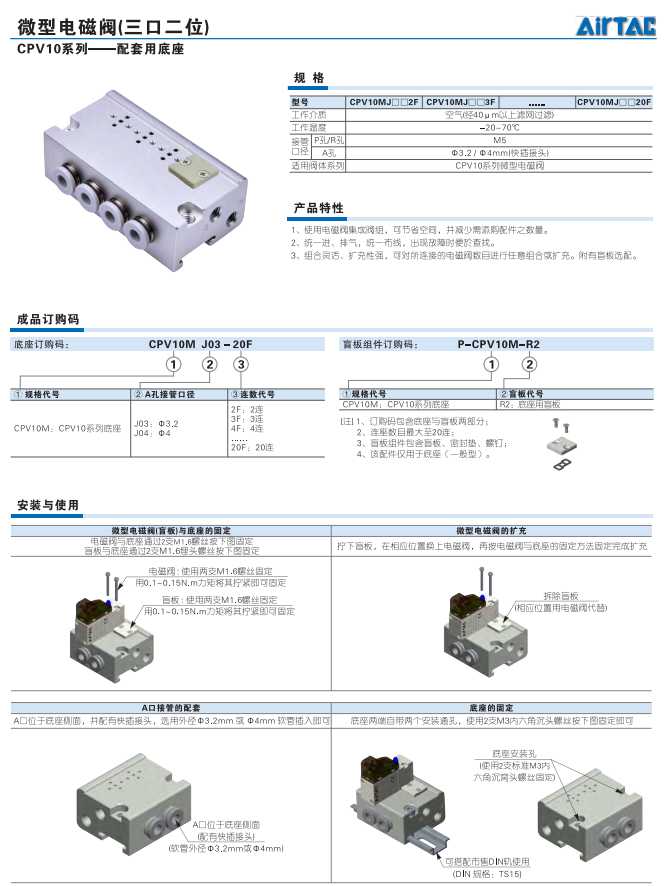 微型電磁閥(三口二位)CPV10系列配套用底座