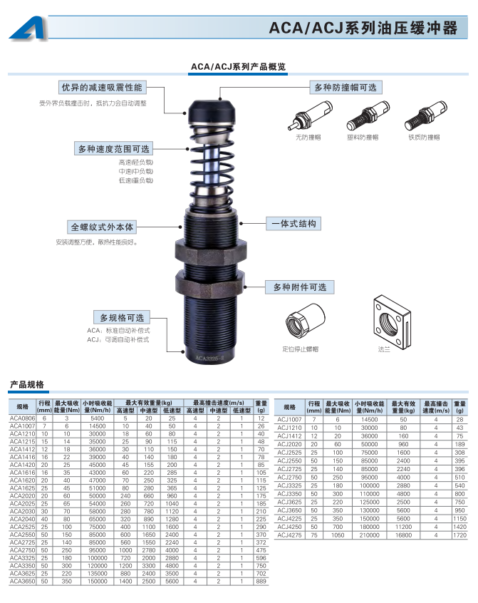 ACA/ACJ系列油壓緩沖器