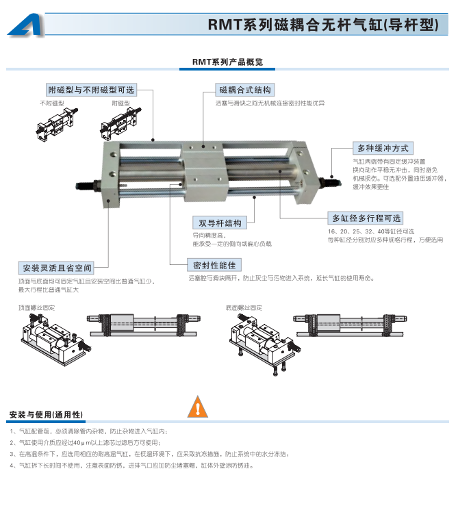 RMT系列磁耦合無桿氣缸(導(dǎo)桿型)